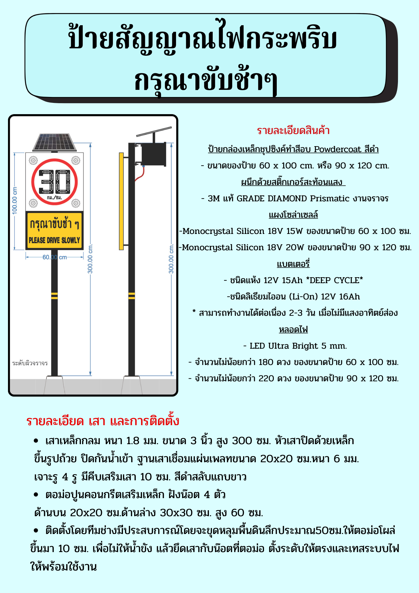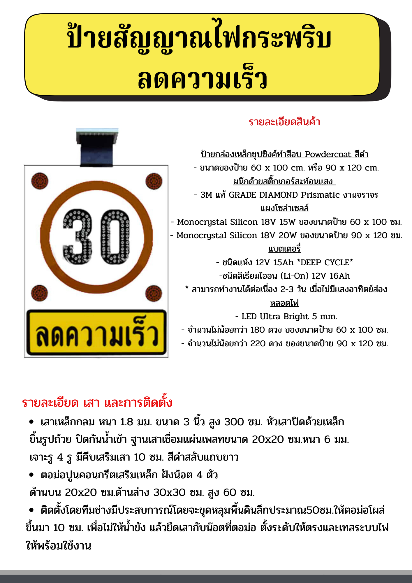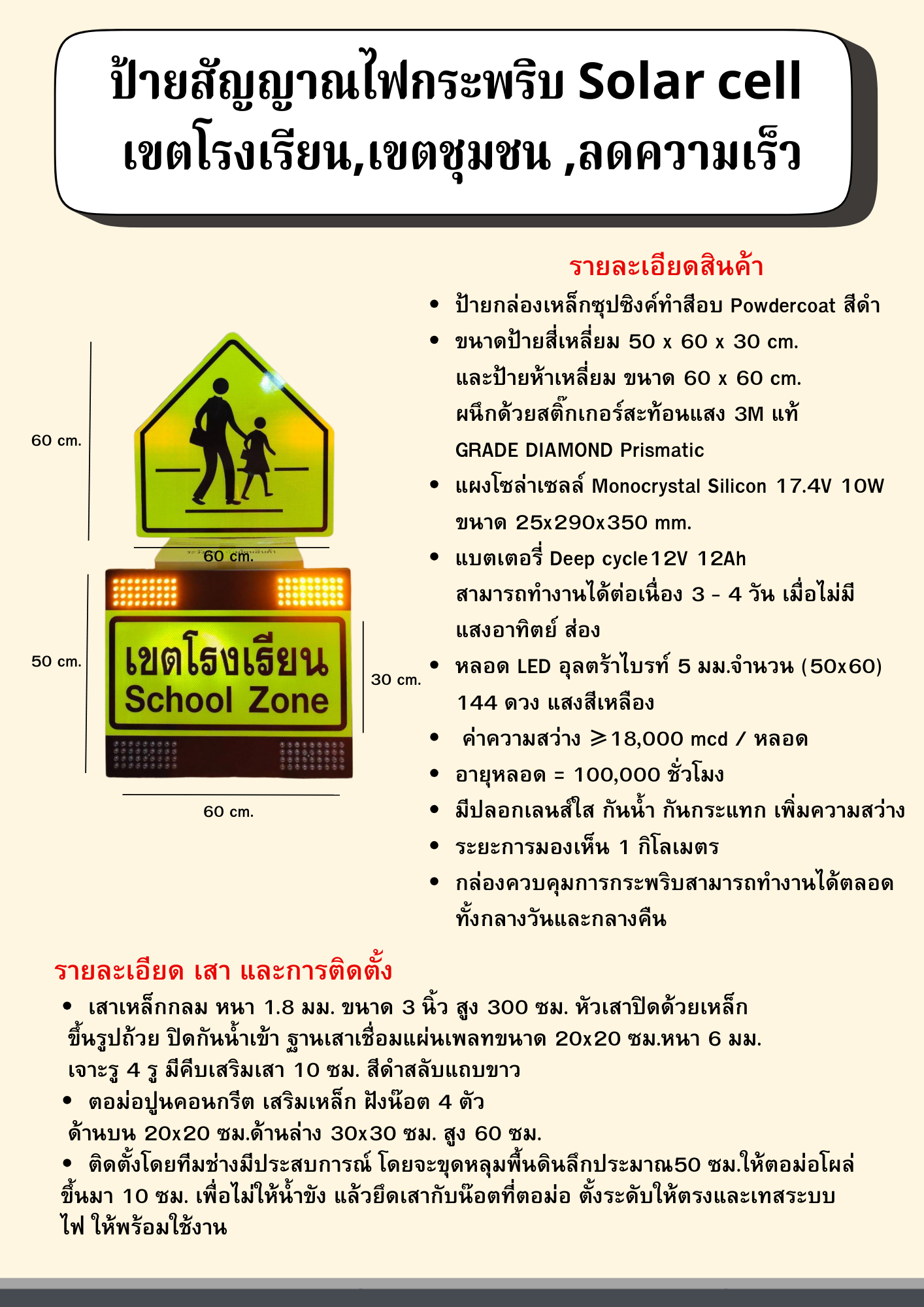 โซล่าเซลล์ : ไฟกระพริบ,เขตโรงเรียน,ลดความเร็ว ระวังคนข้ามถนน