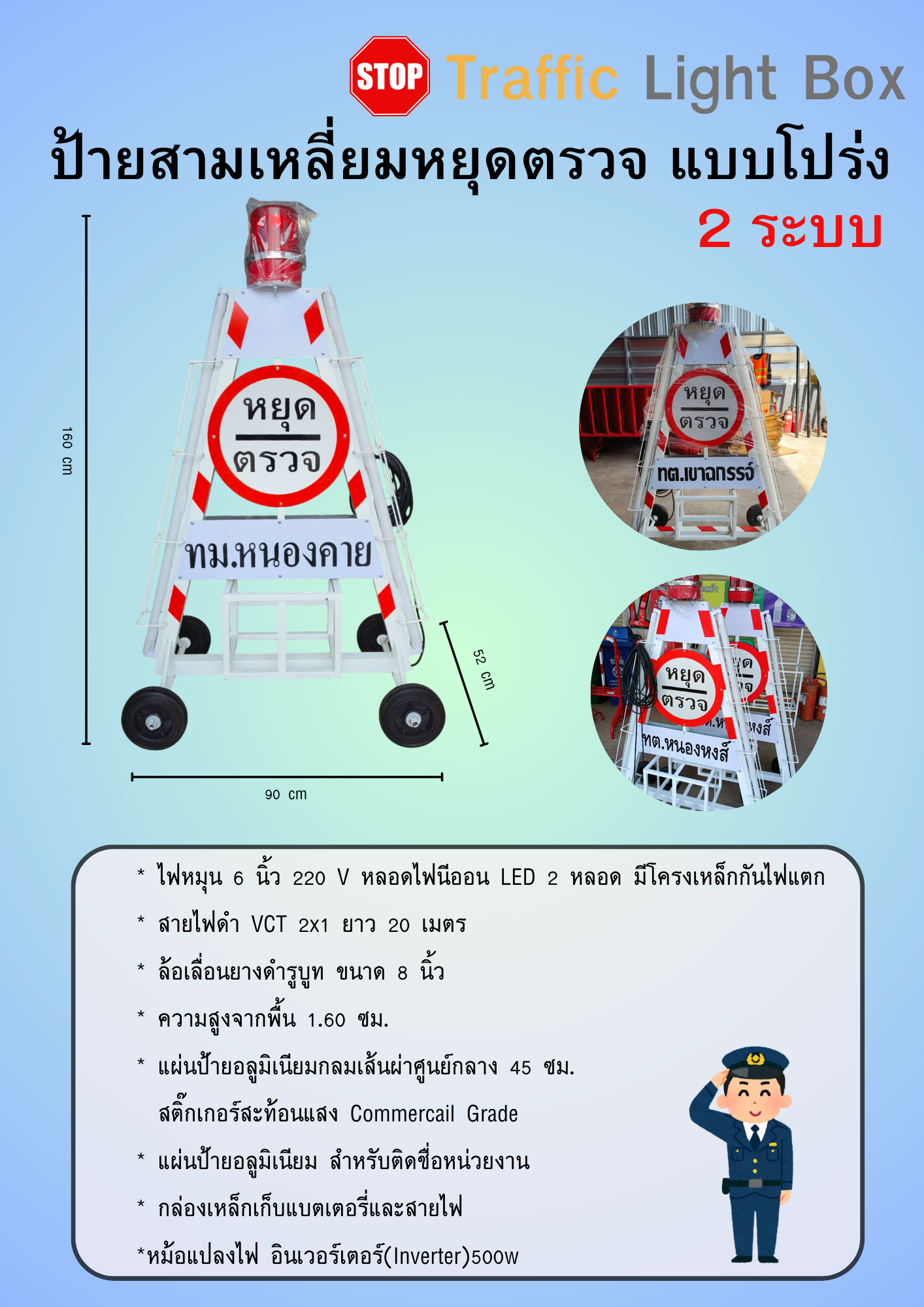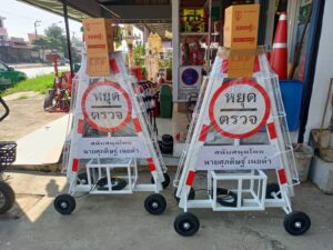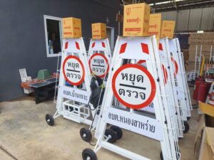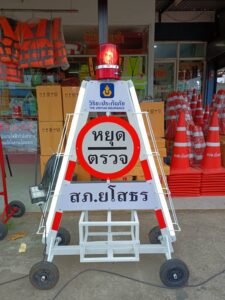 #กล่องไฟสามเหลี่ยมหยุดตรวจ ติดป้ายชื่อหน่วยงานหรือข้อความ ฟรี!